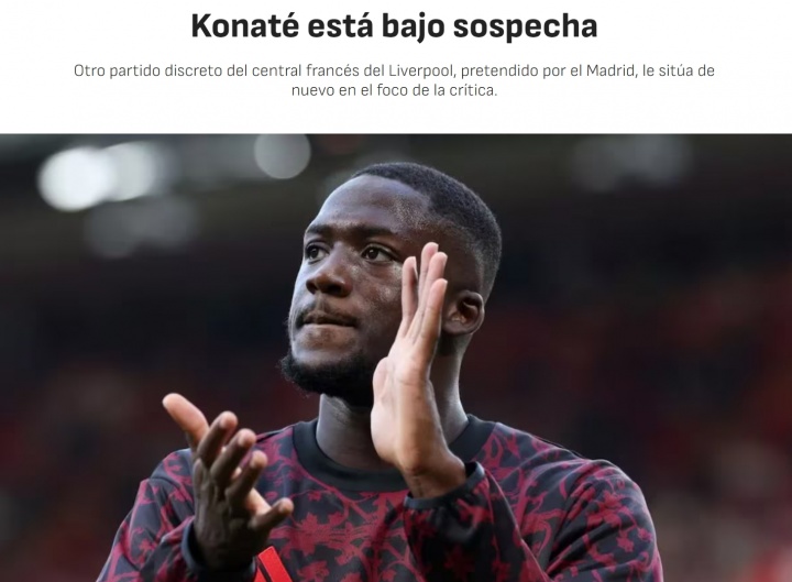 《阿斯报》表示,这并非科纳特第一次因其表现而受到批评,尤其是在他可能转会皇马的传闻愈演愈烈之后。他与利物浦的合同即将到期并且仍未续约,随着他离队的临近,他的表现似乎正在下滑。