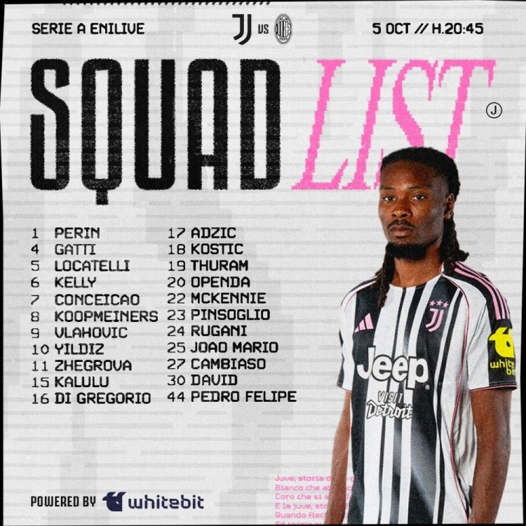 尤文对阵米兰大名单:戴维、K-图拉姆在列,布雷默、卡巴尔缺席