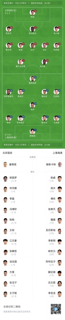 国安vs海港:4外援PK5外援,塞鸟先发国安继续三中卫,蒋光太出战